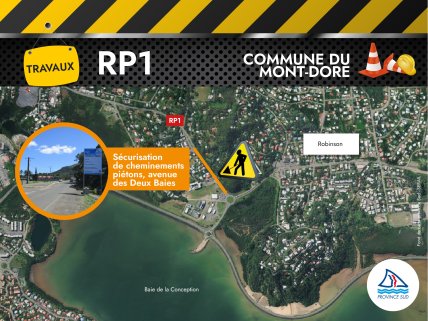 La province Sud vous informe que pour sécuriser les piétons, elle aménage 350 mètres de chemin piétonnier sur la RP1, commune du Mont-Dore.