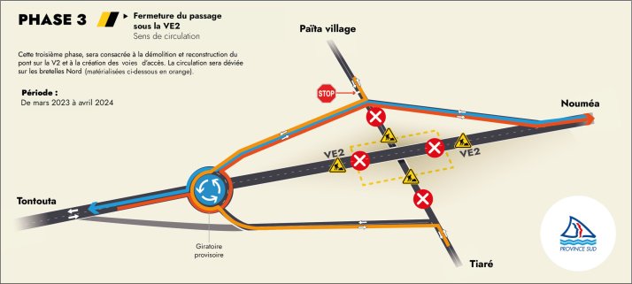 Chers usagers de la VE2, habitants de la Ville de Païta, le chantier de l’échangeur de Païta Nord entre dans sa phase 3