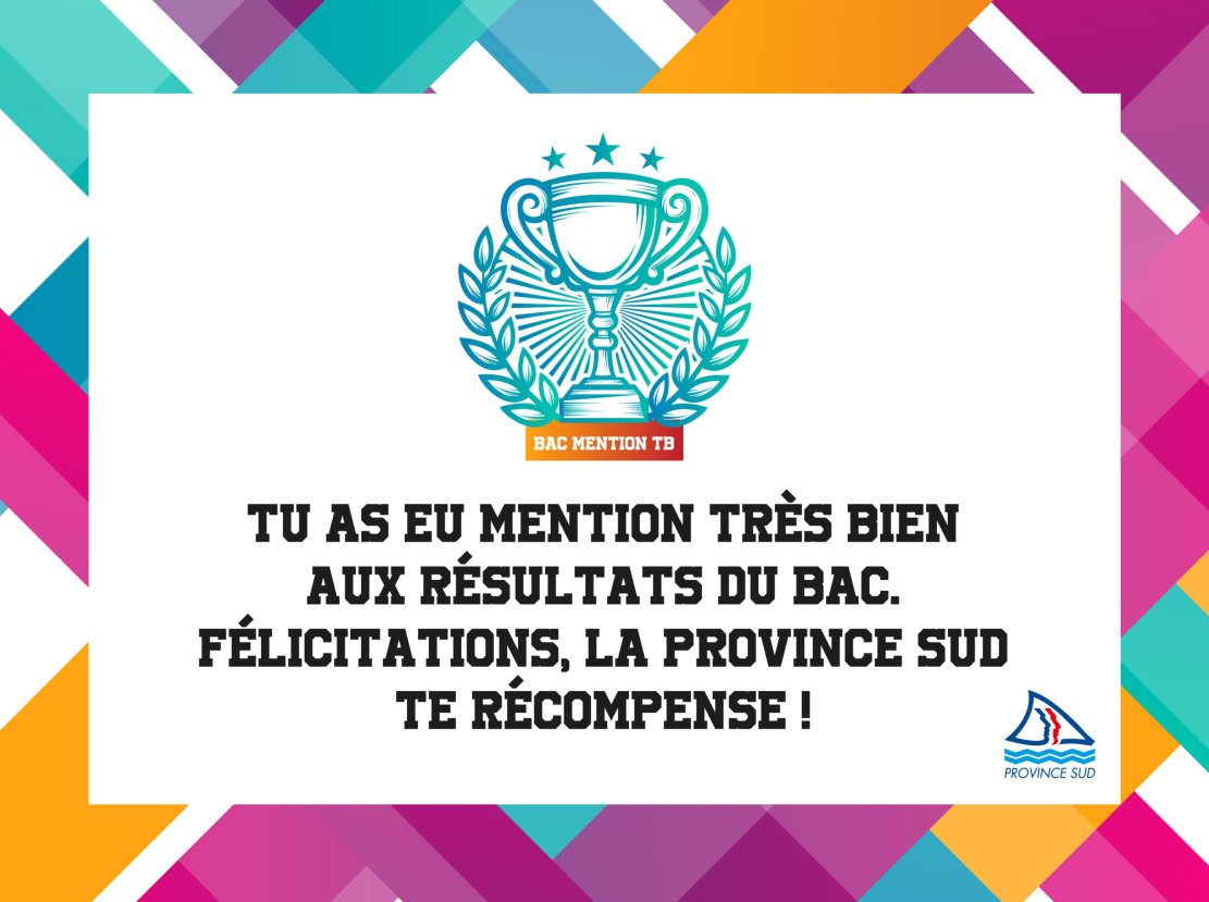 La date sera transmise aux bacheliers ayant obtenu la mention Très Bien au baccalauréat 2025 et ayant fait la démarche de s’inscrire via le formulaire disponible sur province-sud.nc/mention-tres-bien
