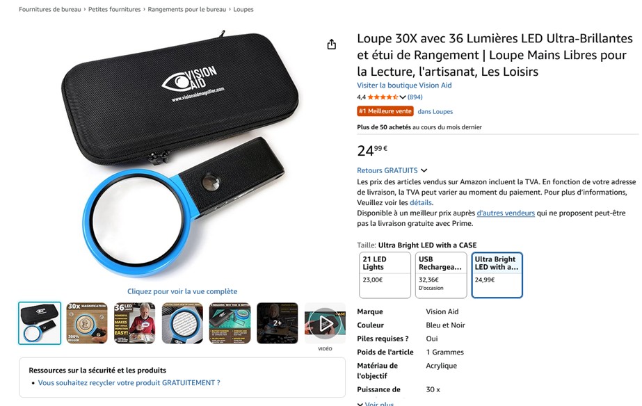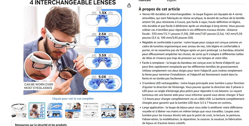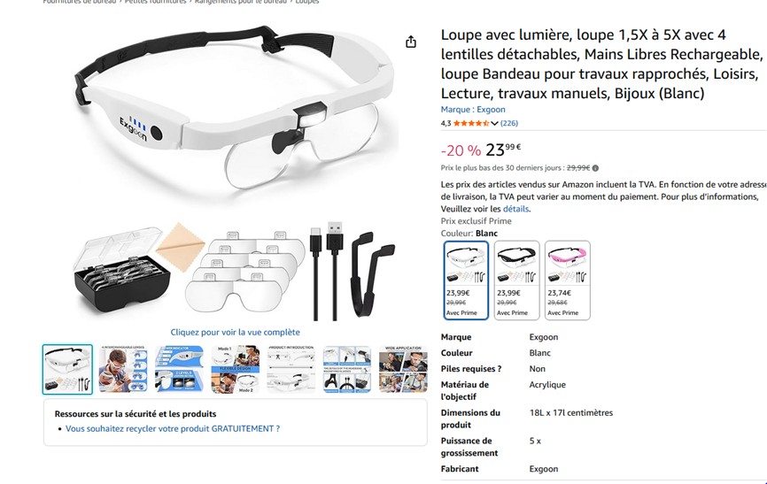 2) LUNETTES LOUPES avec LED et verres interchangeables, avec grossissement jusqu’à x 5 (voir photos ci-jointes)