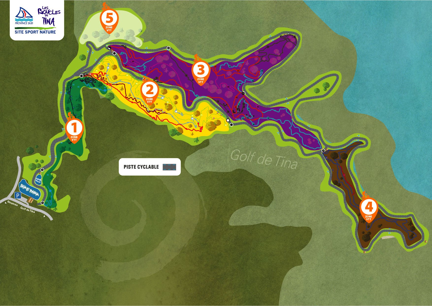 Les Boucles de Tina ce sont 7,5 km de piste cyclable et des pistes VTT aménagées avec des modules.