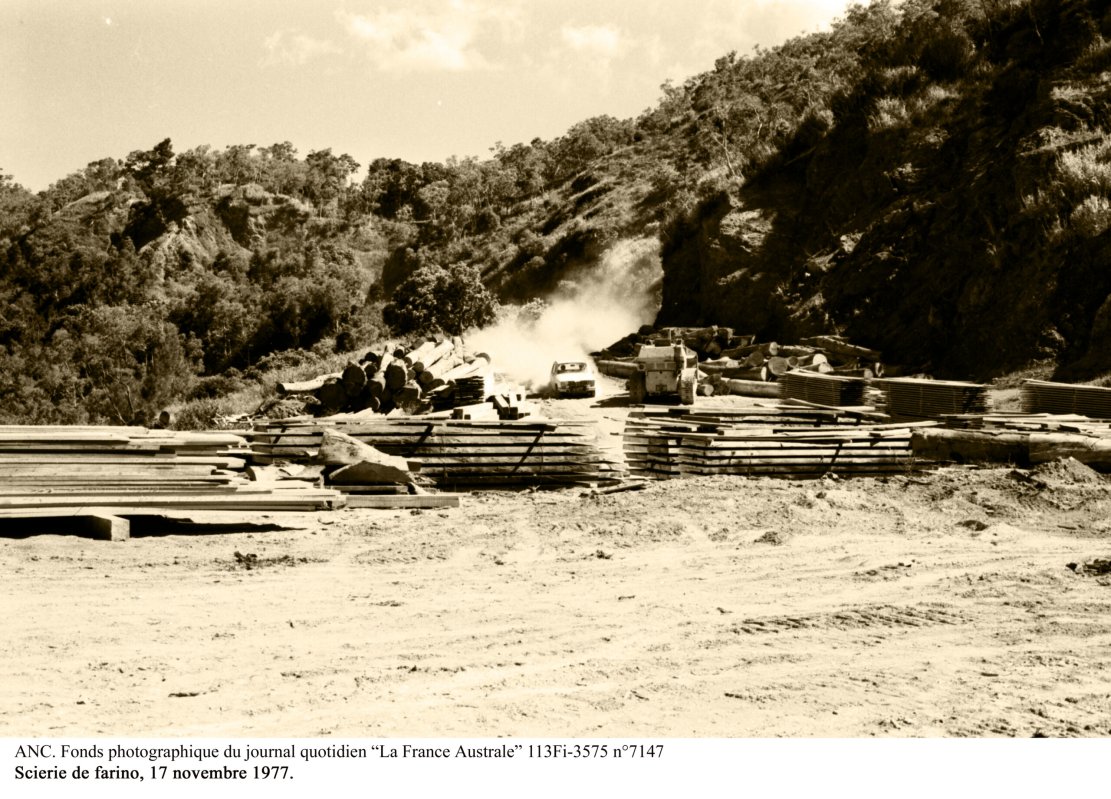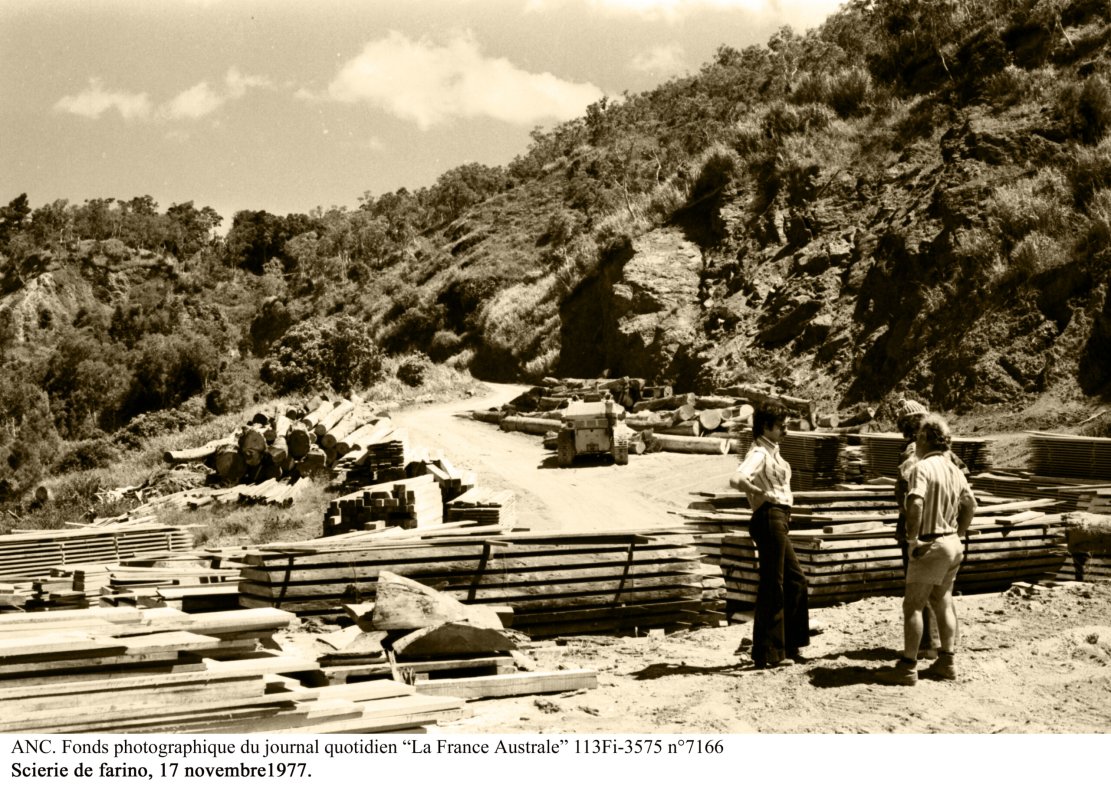 En 1960, monsieur Clément Germain, exploitant le bois à Nouméa, ouvre une scierie à Farino. Elle était située sur l’actuel parking du parc. La route ainsi créée à cette époque était large et avait permis de désenclaver certaines propriétés. Cette création d’entreprise dans une région où le travail se faisait rare ne fera pas que des heureux. En effet, pendant l’exploitation, les creeks étaient souvent remplis de boue !…en ces temps-là, la protection de l’environnement n’était pas vraiment une priorité. Monsieur Germain avait également réalisé de nombreuses pistes en forêt, souvent pour aller chercher de gros arbres, notamment des houps ou des kaoris. Toutes ces pistes et routes forestières ont dévasté l’environnement de l’époque mais elles avaient eu un côté positif pour les chasseurs de la région qui pouvaient alors se rendre à la chasse en voiture alors qu’auparavant tout se faisait à pied !