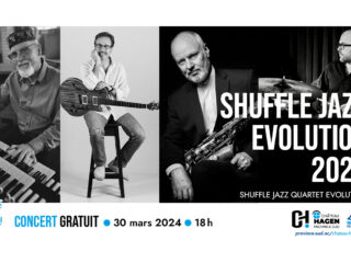 Evenement Concert Shuffle Jazz Evolution 2024 jazz evolution 2024 sera interprétée pour la 1er fois sur la scène du Château Hagen. Un concert instrumental qui réunit trois musiciens australiens venus