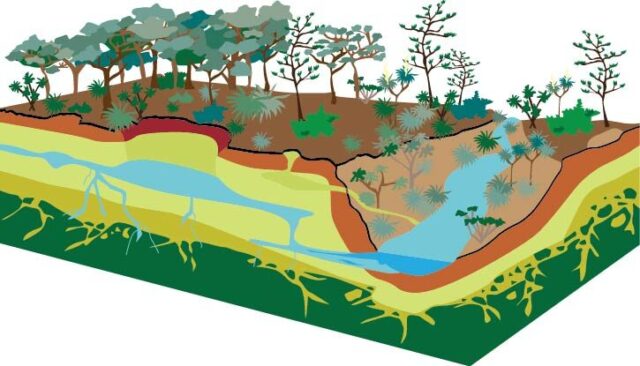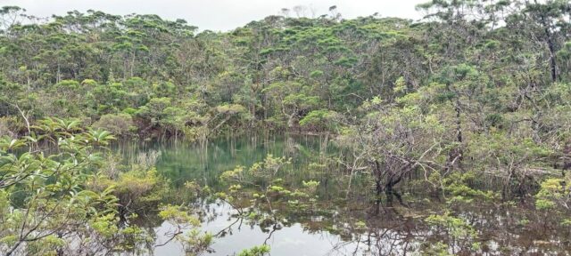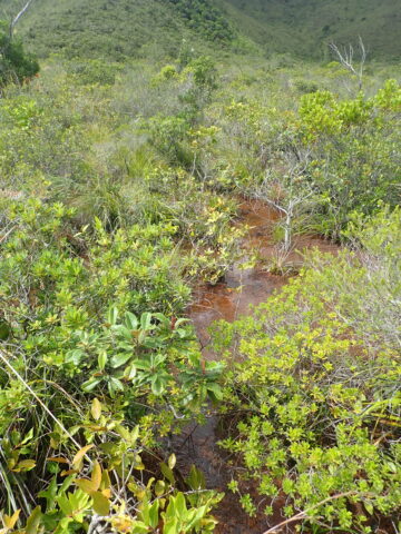 - Les zones humides à hydromorphie permanente, abritent des espèces rares protégées et menacées comme Retrophyllum minus (EN) et Dacrydium guillauminii. (CR). Ces écosystèmes jouent un rôle clé dans la conservation de la biodiversité notamment en fournissant des habitats pour les oiseaux et les espèces adaptées aux conditions d’humidité permanente.