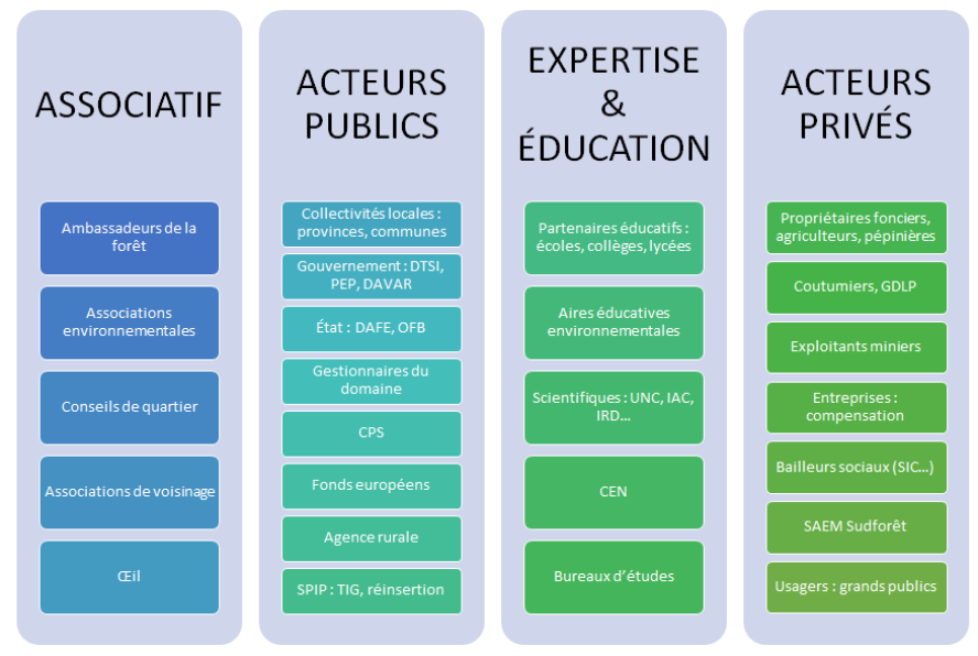 La province Sud a choisi de co-construire la politique de reboisement avec les acteurs impliqués : Ambassadeurs, scientifiques, collectivités locales, institutions, associations, agriculteurs, pépiniéristes, botanistes, etc.