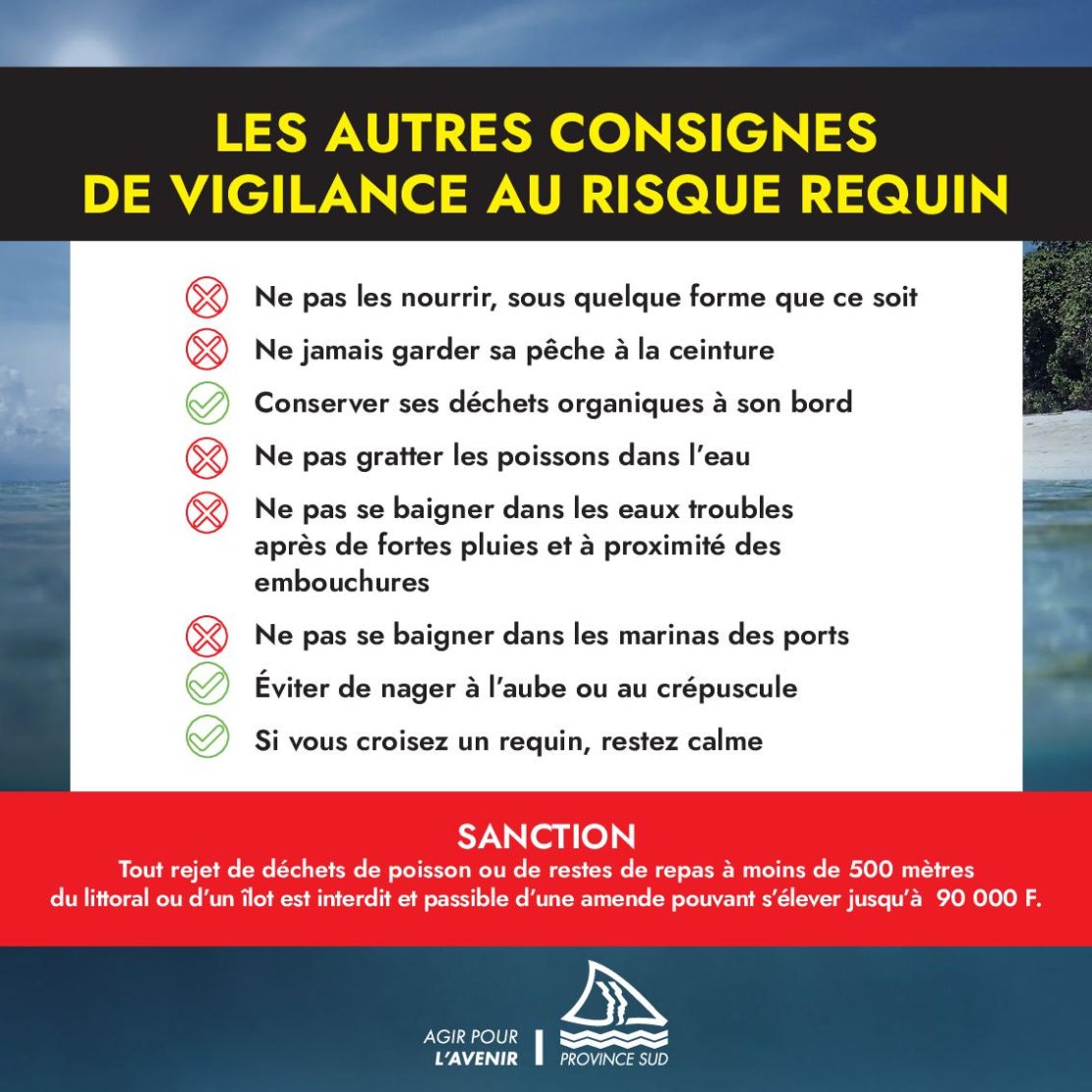Consciente de la problématique du risque requin, la province Sud aux côtés des communes et notamment de la mairie de Nouméa, du gouvernement et de l’État comme de l’ensemble des acteurs et partenaire concernés, n’a cessé d’œuvrer pour mettre en place une politique concertée afin de protéger l’ensemble des Calédoniens face au risque requin.