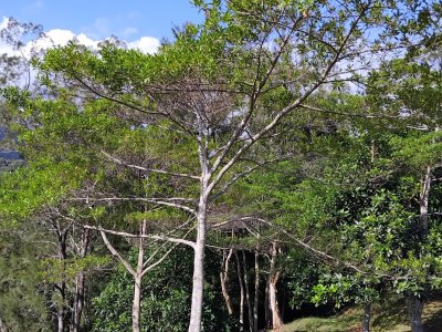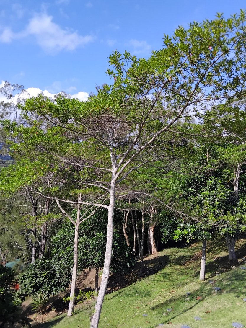 Arbre de 10 – 25 m avec un tronc élancé de 0,20m à 1 mètre de diamètre. Ses branches sont horizontales aux rameaux grêles. C’est un arbre typique des forêts humides de Nouvelle-Calédonie.