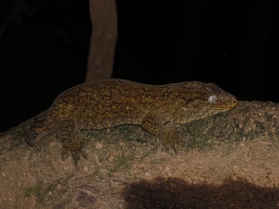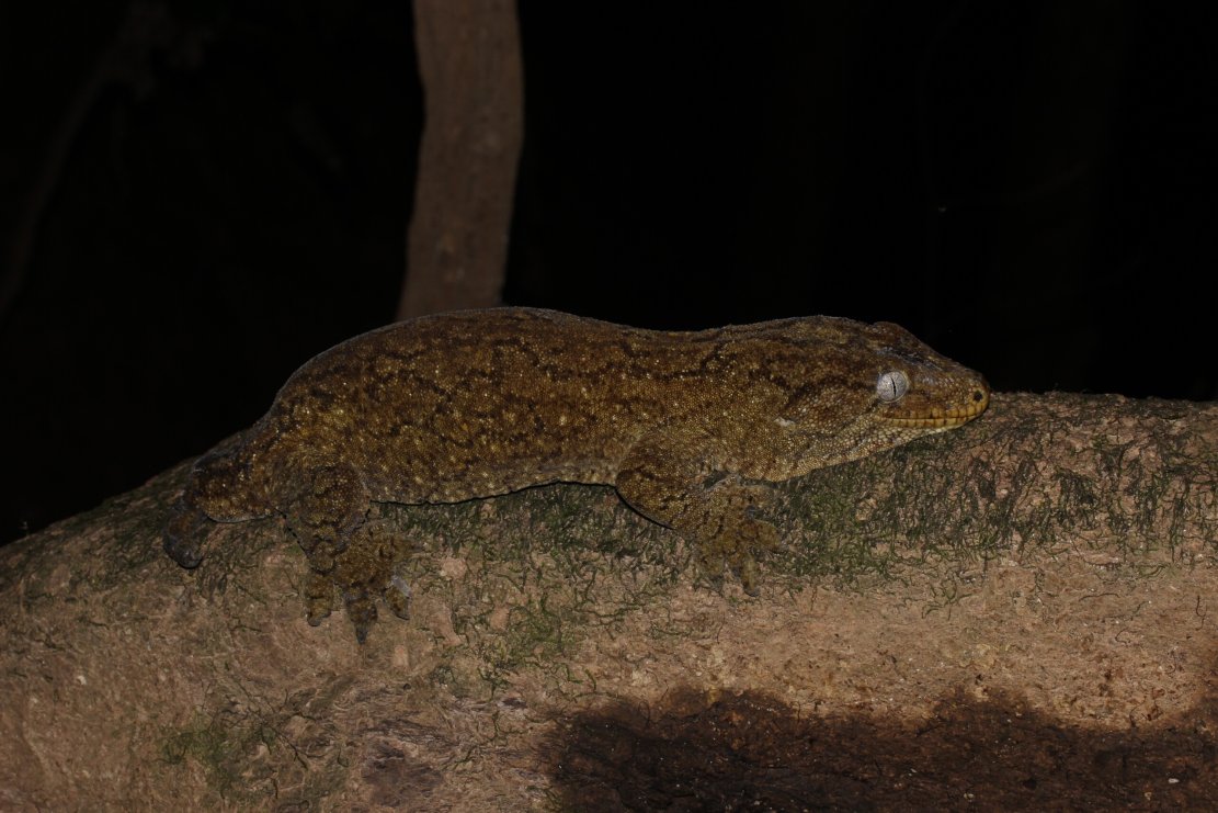 Le gecko géant de Leach est généralement de couleur grisâtre, verdâtre ou brun, avec des points plus clairs ou des tâches pâles sur le corps.