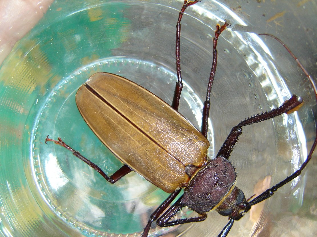 Les larves peuvent atteindre 8 à 10 cm de long, et environ 2cm de large, voire plus. Elles forment des galeries qu’elles rebouchent au fur et à mesure derrière elles à l’aide des débris de bois qu’elles ont déchiquetés à l’aide de leurs mandibules puissantes. Une fois matures, les larves forment une loge d’environ 10 cm de long et 2,5 cm de large dans laquelle elles se transforment en nymphes. Quelques semaines plus tard, la nymphe donne naissance à un adulte qui doit s’extirper du bois mort pour sécher, durcir sa carapace et ses ailes avant de pouvoir s’envoler. L’insecte adulte est de couleur marron à marron foncé au niveau du thorax et de la tête. Il mesure de 40 à plus de 80 mm de long pour les plus gros spécimens. Il est muni de longues antennes, typiques des coléoptères cérambycidés, que l’on nomme souvent des « longicornes ».