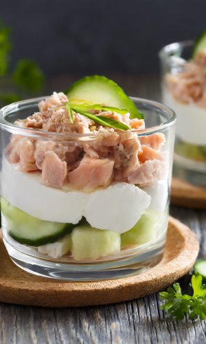 Verrines de mousse d’avocats, crabes et pamplemousse
