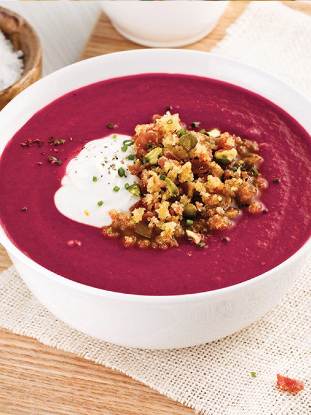 Mixer très fin l’ensemble des ingrédients afin d’obtenir une purée très lisse.