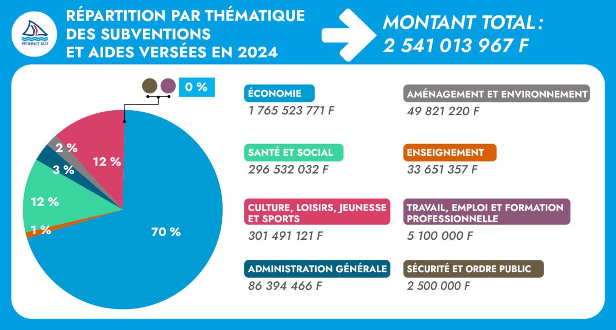 La province Sud apporte son soutien dans de nombreux secteurs d’activité notamment en versant des subventions ou encore des aides au profit d’associations, entreprises et autres entités œuvrant en province Sud. Les sommes versées peuvent concerner des dépenses de fonctionnement ainsi que d’investissement.