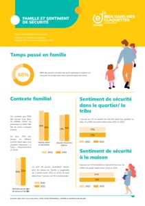 Temps passé en famille Contexte familial Sentiment de sécurité dans le quartier/ la tribu Sentiment de sécurité à la maison FAMILLE ET SENTIMENT DE SÉCURITÉ On constate que 84% des jeunes sont dans un habitat urbain ou périurbain en 2025. Soit 5% de moins comparé à 2022. De plus, 79% des jeunes se réfèrent comme étant dans une situation financière « à l’aise » financièrement en 2025. Rapport de données provinciales Enquête «Bien dans mes claquettes» 2025 FICHE THÉMATIQUE PROVINCIALE 68% des jeunes ont répondu qu’ils «passaient toujours ou souvent» du temps avec leurs parents après les cours. La part de jeunes souhaitant passer plus de temps en famille a augmenté de 2 points entre 2022 et 2025. Ils sont désormais 7 jeunes sur 10 à le demander. 7 jeunes sur 10 se sentent en sécurité dans leur quartier ou tribu. Ce chiffre est resté stable entre 2022 et 2025. 9 jeunes sur 10 se sentent en sécurité chez eux. Ce chiffre est plutôt stable entre 2022 et 2025 Enquête «Bien dans mes claquettes» 2025 / Fiche Thématique - Famille et sentiment de sécurité
