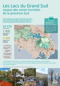 En 2014, la région des Lacs du Grand Sud est classée à la convention Ramsar. Cette inscription prestigieuse confère à ce patrimoine naturel de la province Sud une reconnaissance internationale. Cette zone, réservoir de biodiversité, joue un rôle majeur dans le cycle de l’eau. « Vastes étendues saturées d’eau, ou totalement inondées, temporairement, ou perpétuellement, les zones humides sont des écosystèmes où l’eau, facteur écologique prépondérant, contrôle le milieu naturel, la vie animale et végétale ». 1 000 espèces végétales endémiques au Grand Sud 2 000 espèces animales endémiques au Grand Sud 43 970 hectares environ Les Lacs du Grand Sud Joyaux des zones humides de la province Sud Aires protégées marines Aires protégées terrestres Réserve technique du Creek Pernod* Emprise mine et usine Vale NC Périmètre Ramsar Ramsar, une convention internationale pour préserver les zones humides Créé en 1971, lors de la signature de la convention relative aux zones humides, le label Ramsar a pour objectif d’identifier les zones humides d’importance internationale. www.ramsar.org/fr * Zone géographique au niveau de laquelle aucune exploitation minière ne peut être entreprise pendant une durée de 25 ans.