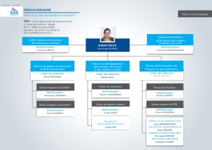 DIRECTRICE Marie-Ange MORVAN ORGANIGRAMME DIRECT ION DES RESSOURCES HUMAINES Service du développement des carrières, du conseil et des relations sociales CHEF DE SERVICE Mélyssa JULIA Service de la formation, de l’insertion et de la prévention CHEF DE SERVICE POSTE VACANT Service de gestion du personnel et de la rémunération CHEF DE SERVICE Olivier ROCHARD Bureau de gestion individuelle 1 RESPONSABLE Véron ique SUMIOKA Bureau de gestion individuelle 2 RESPONSABLE Mur i e l FRIGENI Bureau du recrutement RESPONSABLE Shandi NOMOREDJO Bureau de la gestion collective RESPONSABLE Ci ndy HONS Bureau de gestion du PPIC RESPONSABLE Pr i sca CASANOVA Bureau de la formation RESPONSABLE Auré l i a NAFOUI DRH - Centre Administratif de la province Sud 6, routes des Artifices - Moselle BP L1 - 98849 Nouméa CEDEX Standard : 20 33 00 - Fax 20 30 12 drh.contact@province-sud.nc PÔLE FONCT IONNEL Cellule administrative et de gestion des moyens (mutualisée avec la DFI) RESPONSABLE Chr i s t i ne DAMEL INCOURT Cellule système d’information des ressources humaines RESPONSABLE Ca t her i ne RELLO MÉDECIN DE PRÉVENT ION Anne GRANDMOUGIN ASSISTANTE ADMINISTRATIVE Diane TRUONG CHARGÉ DE PRÉVENTION HSCT Christophe GOUGET PRÉVENTEUR/MÉDIATEUR Rodolphe CAUDEN ÉTUDES ET RELAT IONS SOCIALES Sandra MAI Mise à jour : juin 2022